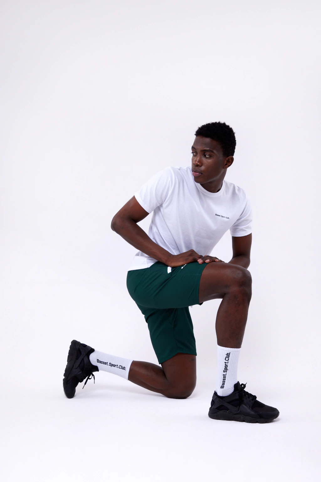 Bermuda de microfibra con recortes laterales y bolsillos con cierre blanco.